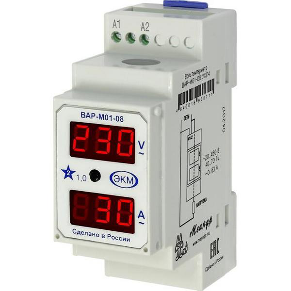 Амперметр/Вольтметр (вольтамперметр, ампервольтметр) на ДИН рейку ВАР-М01-083 АС20-450В Измерение среднеквадратичных значений напряжений и токов (True RMS)Измерение мощности и потребляемой нагрузки