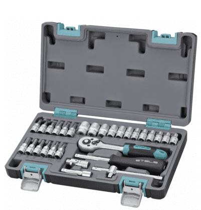 Набор инструментов STELS состоит из 29 предметов, выполненных из хром-ванадиевой стали (CrV). Инструменты имеют квадратный привод 1/4 дюйма, что обеспечивает надежное соединение с другими элементами. В комплекте имеется пластиковый кейс для удобного хранения и транспортировки инструментов. Этот набор идеально подходит как для профессионального использования, так и для ремонта и обслуживания дома.