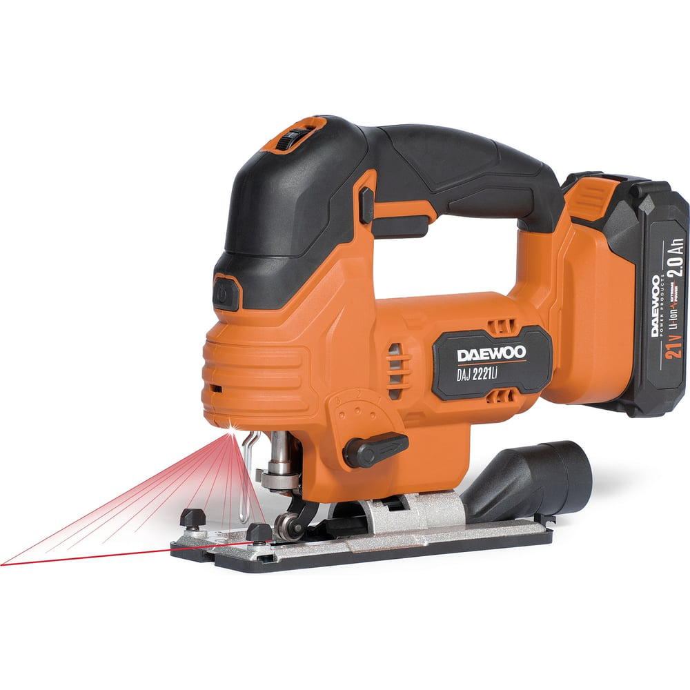 Товар совместим со всеми аккумуляторными батареями и зарядными устройствами DAEWOO линейки 21ВВ покупке и использованию доступны:- Аккумуляторные батареи: DABT 4221Li, DABT 5021Li, DABT 6021Li, DABT 8221Li- Зарядные устройства: DACH 2521Li, DACH 5021Li, DACH 4021Li, DACH 8021LiОсобенности:Литая алюминиевая подошва Обладает большей механической прочностью и позволяет сохранить точность выставленных параметров пиленияЛазерный указатель Способствует производить разрез четко по намеченной прямой линии с минимальной погрешностьюLED подсветка рабочей зоны Для комфортной работы в условиях ограниченного освещенияМаятниковый ход Повышает производительность инструмента, скорость резки и упрощает работу с различными по твердости материаламиЭлектронная регулировка оборотов Позволяет выставить требуемое число оборотов в зависимости от материалаБыстрый зажим пилки Позволяет экономить время при частой смене полотна (обработка различных материалов)Адаптер пылеотвода Дает возможность подключить пылесос или мешок, чтобы сохранять рабочее место в чистотеПластиковая накладка Защитит обрабатываемый материал (например, ЛДСП, паркетную доску) от образования царапин на поверхности