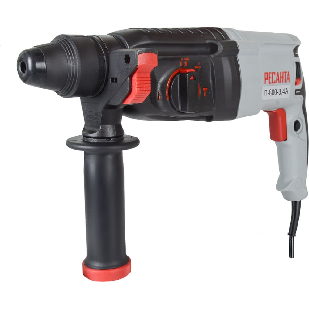 Перфоратор Ресанта П-800-3,4А отлично справляется с ударным сверлением кирпича, бетона, камня. Им можно проштробить стены, просверлить отверстия в дереве, металле.Электрический двигатель устройства работает от 220 В. Пневматический ударный механизм формирует импульс, который передается на патрон. В последнем при этом размещают сверла, буры и другие приспособления для сверления.Отличительные особенности Ресанта П-800-3,4А:Мощность устройства составляет 800 Вт.Можно регулировать частоту вращения в диапазоне от 0 до 1100 об/мин, а также частоту ударов в диапазоне от 0 до 5200 уд/мин.Функция реверса позволяет легко вытащить застрявшее сверло.Ограничитель глубины сверления позволяет работать аккуратно и ровно.Рабочие механизмы защищены от попадания в них пыли. Это существенно продлевает срок службы перфоратора.Надежный и прочный корпус из пластика выдерживает падения с небольшой высоты.Вес устройства составляет всего 2,7 кг. Им легко и удобно работать.Есть настройка углового положения работы.Кабель длиной 2 м позволяет в большинстве случаев работать без удлинителя.Перфоратор Ресанта П-800-3,4А станет незаменимым помощником при любом ремонте. Без него не обойтись, если нужно повесить полку на бетонную стену. Качественные материалы, надежный двигатель делают использование перфоратора приятным и долгим.
