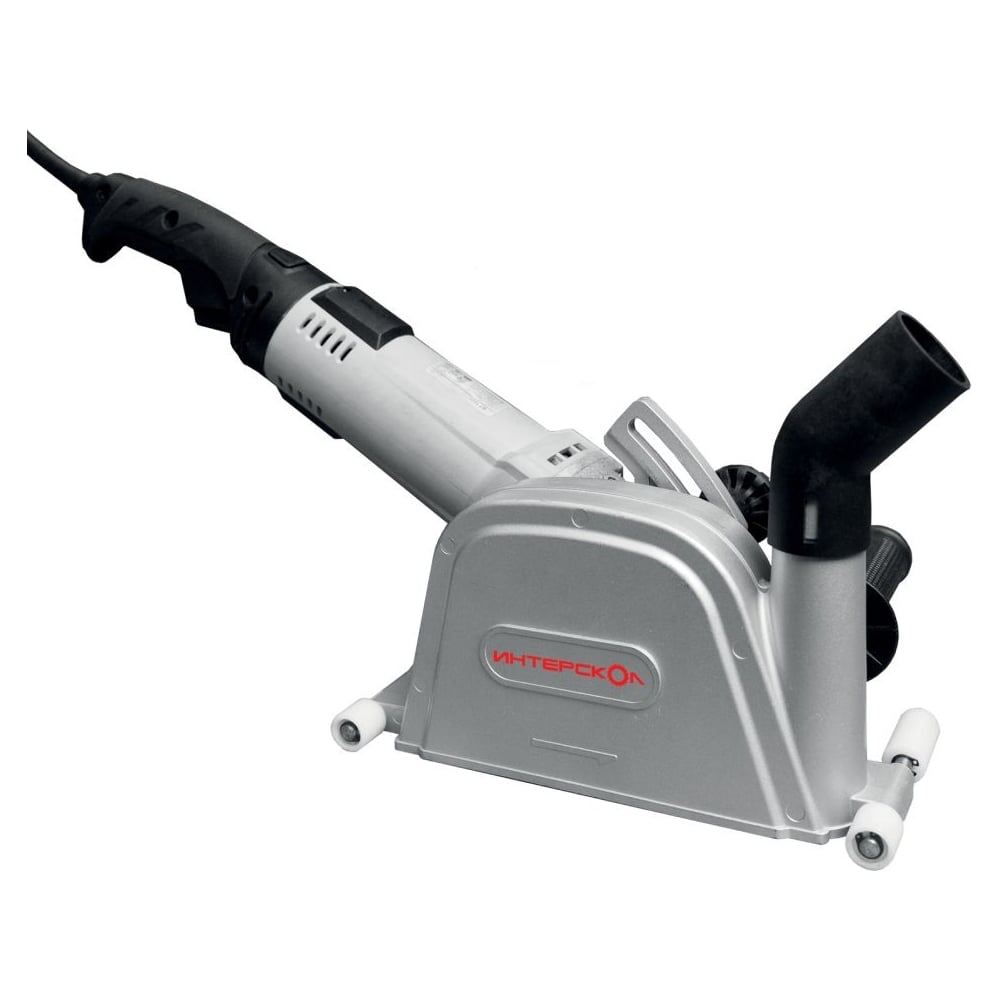 Двухступенчатый редуктор позволяет уменьшить технологические зазоры, что улучшает передачу момента и снижает износ зубчатых колес редуктора, продлевая его срок службы. Унифицированный моторный блок выполнен на базе двигателя ИНТЕРСКОЛ серии ВС и оснащен константной электроникой с тахогенератором (магнитный датчик оборотов) – он ограничивает обороты холостого хода, поддерживая их под нагрузкой, что позволяет увеличить полезную мощность до 25% без изменения массогабаритных показателей двигателя. Конструкция бороздодела позволяет легко и быстро выполнять штробы, ролики на кожухе позволяют вести машину по поверхности ровно и уверенно. Ширина штробы регулируется дистанционными шайбами, а глубина – узлом регулировки вылета дисков. Узел пылеудаления использует кинетическую энергию частиц для направления их в патрубок пылеотвода – это позволяет повысить эффективность работы системы пылеудаления. Диаметр пылеотвода стандартизован по системе 35, что соответствует присоединительному диаметру на шлангах пылесосов ИНТЕРСКОЛ.