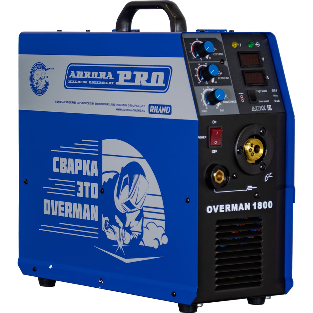 Инверторный сварочный полуавтомат Aurora PRO OVERMAN 1800 Mosfet 39525 - современный агрегат для сварки MIG/MAG. Оборудование позволяет выполнять работы как в профессиональной (строительство, кораблестроение), так и в бытовой (монтаж металлоконструкций, авторемонт) сфере деятельности. Аппарат имеет цифровой дисплей для настройки и отображения параметров сварки. Оснащается встроенным механизмом подачи проволоки с регулировкой скорости подачи (от 2 до 15 м/мин). Агрегат отлично справляется с таким "капризным" материалом, как алюминий. Модель имеет регуляторы сварочного тока, сварочного напряжения и индуктивности, которые позволяют задавать оптимальные значения для выполнения работ высокого качества. Опция - тележка Avrora PRO для транспортировки инвертора. Применение: авторемонт строительство небольшое производство монтаж металлоконструкций