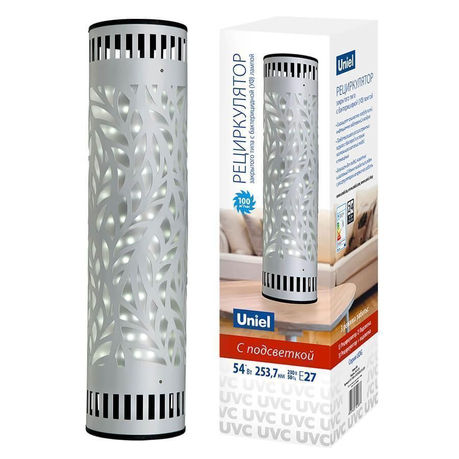 Расширенная гарантия на товар составляет 2 года. поставщик рекомендует использовать лампы накаливания с цоколем E27 для освещения площади 3 м2. Ультрафиолетовый бактерицидный рециркулятор Uniel UDG-V100A UVCB/6500K D02 Steel UL-00007984 в современном стиле используется в интерьере Для офиса с установкой На стол.
