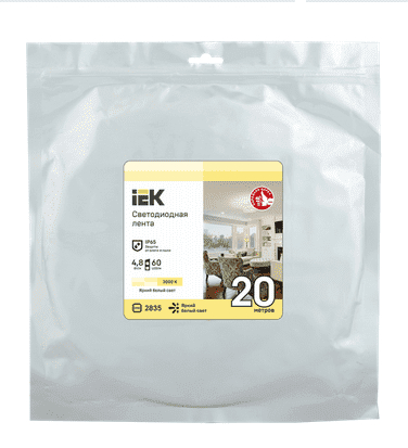 Светодиодная лента IEK LED LSR-2835WW60-4.8-IP65-12В (уп.20м), LSR1-1-060-65-3-20 - это качественная гибкая лента с высокой яркостью светодиодов, предназначенная для освещения различных помещений и создания атмосферного освещения. Длина ленты в упаковке составляет 20 метров, что позволяет охватить большие площади. Лента имеет степень защиты IP65, что обеспечивает защиту от пыли и влаги. Работает от напряжения 12В, что делает ее безопасной в использовании. Идеальный выбор для создания уютной атмосферы в доме, на улице или в офисе.