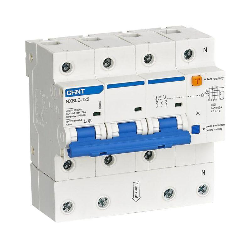 Автоматические выключатели дифференциального тока (АВДТ) серии NXBLE-125 предназначены для применения в сетях переменного тока напряжением до 400 В частотой 50/60 Гц с номинальным током до 125 А для нечастых включений и отключений нагрузок, а также защиты от перегрузки, короткого замыкания, поражения электрическим током при косвенных прикосновениях и возгораний по причине утечки тока в электроустановках жилых, общественных и промышленных зданий.Необходимо проверять работоспособность АВДТ серии NXBLE-125 нажатием на кнопку «Тест» не реже 1 раза в месяц.