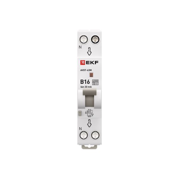 Автоматический выключатель дифференциального тока АВДТ-63 EKF PROxima представляет аппарат, сочетающий функции автоматического выключателя с электромеханическим или электронным УЗО. При обнаружении автоматическим выключателем в защищаемом участке сети тока утечки (повреждения) на землю или сверхтока (тока перегрузки иликороткого замыкания) происходит срабатывание устройства, приводящее к отключению защищаемой сети. Возможна коммутация алюминиевым и медным проводником.Автоматический выключатель дифференциального тока малогабаритный АВДТ-63М EKF PROxima представляет аппарат, сочетающий функции автоматического выключателя с электронным УЗО типа АС в компактном корпусе шириной один модуль. При обнаружении автоматическим выключателем на защищаемом участке сети тока утечки (повреждения) на землю или сверхтока (тока перегрузки или короткого замыкания) происходит срабатывание устройства, приводящее к отключению защищаемой сети. Особое отличие дифференциальных автоматических выключателей EKF с электронным УЗО – в наличии блока защиты от перенапряжения. Возможна коммутация алюминиевым и медным проводом.