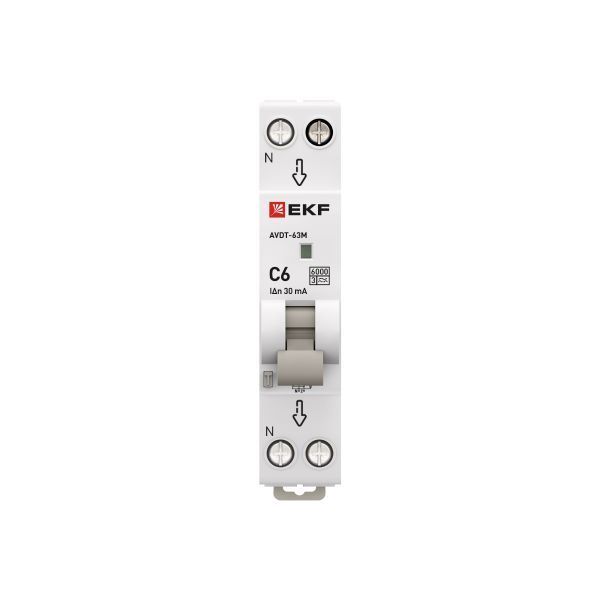 Автоматический выключатель дифференциального тока АВДТ-63 EKF PROxima представляет аппарат, сочетающий функции автоматического выключателя с электромеханическим или электронным УЗО. При обнаружении автоматическим выключателем в защищаемом участке сети тока утечки (повреждения) на землю или сверхтока (тока перегрузки иликороткого замыкания) происходит срабатывание устройства, приводящее к отключению защищаемой сети. Возможна коммутация алюминиевым и медным проводником.Автоматический выключатель дифференциального тока малогабаритный АВДТ-63М EKF PROxima представляет аппарат, сочетающий функции автоматического выключателя с электронным УЗО типа АС в компактном корпусе шириной один модуль. При обнаружении автоматическим выключателем на защищаемом участке сети тока утечки (повреждения) на землю или сверхтока (тока перегрузки или короткого замыкания) происходит срабатывание устройства, приводящее к отключению защищаемой сети. Особое отличие дифференциальных автоматических выключателей EKF с электронным УЗО – в наличии блока защиты от перенапряжения. Возможна коммутация алюминиевым и медным проводом.