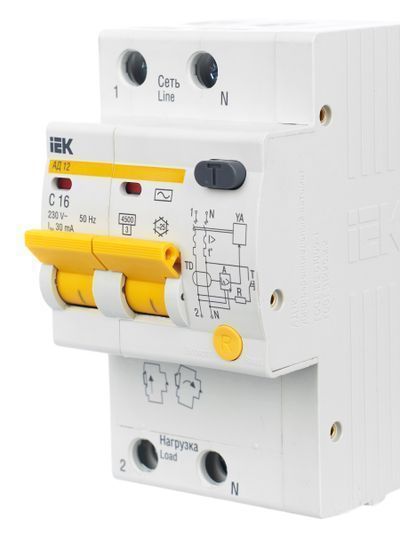 В изделиях предусмотрена индикация срабатывания от дифференциального тока, а для АД12М также светодиодная индикация включенного состояния. АД12М сохраняет работоспособность при снижении напряжения электрической сети до 110 В.