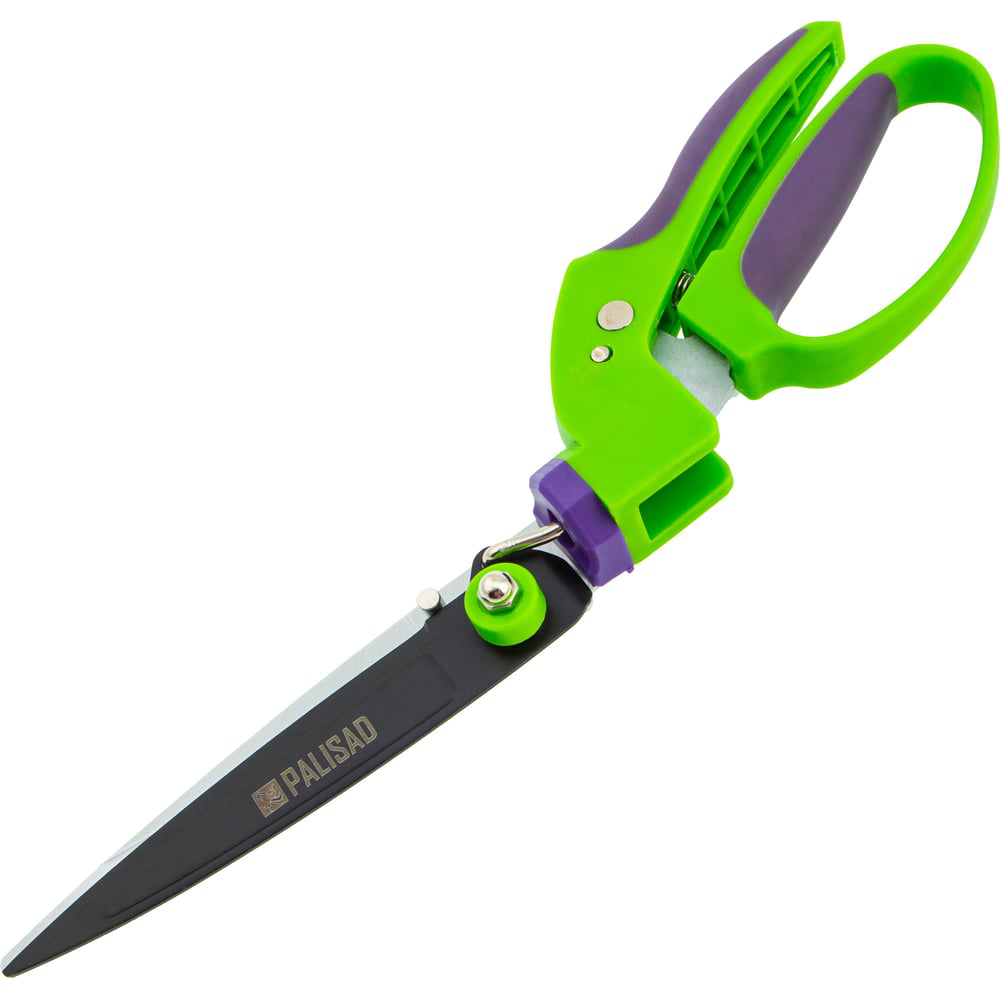 Газонные ножницы Palisad 60574 длиной 350 мм, с пластиковыми обрезиненными рукоятками, используют для подравнивания кромок газонов, стрижки травы вдоль дорожек, бордюров, ограждений, возле клумб и кустов. Рабочая часть поворачивается на 180 градусов, что упрощает работу в труднодоступных местах. Тефлоновое покрытие на верхнем лезвии облегчает рез и препятствует налипанию травяного сока и пыли. Благодаря механизму автооткрывания лезвия не заедает при подстригании жесткой травы. На нижней рукоятке имеется гарда, предохраняющая пальцы пользователя от ссадин, порезов и проколов. Ножницы пригодятся во время ухода за озелененными территориями.